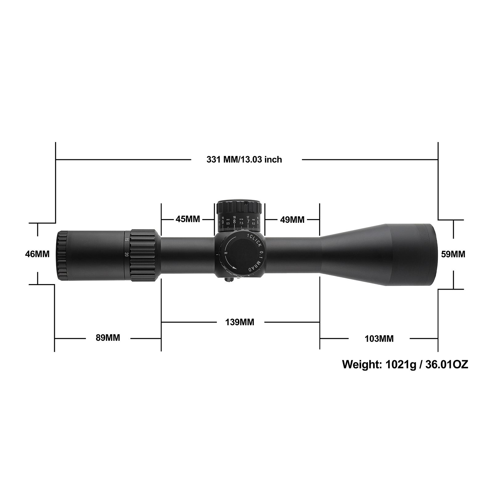 - 风偏调节范围: 25MIL